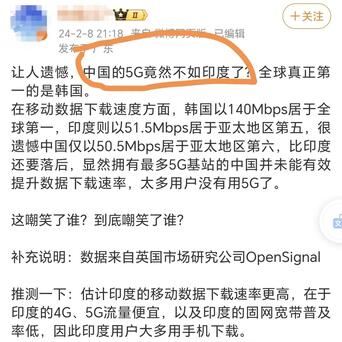 近日,有一则中国5G网速不如印度的报道被流传,请见图1,而这是彻头彻尾的谣言。