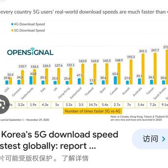 文中称数据来自于OpenSignal,下载速率韩国140Mbps全球第一,而同样该机构2020年11月的测速报告,称韩国下载速度是351.2Mbps,请见图2。