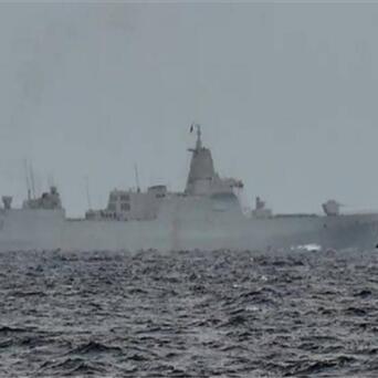 3艘中国军舰明确告知菲律宾挑衅船只:“这是中国军舰,我们正在采取措施,控制你们非法停留在仙宾礁的9701号船,你们不得进入仙宾礁进行任何补给。”随后,这两艘菲律宾海警船迫停留在仙宾礁老远之外动弹不得,无法再往前开一米。